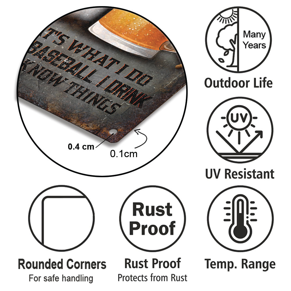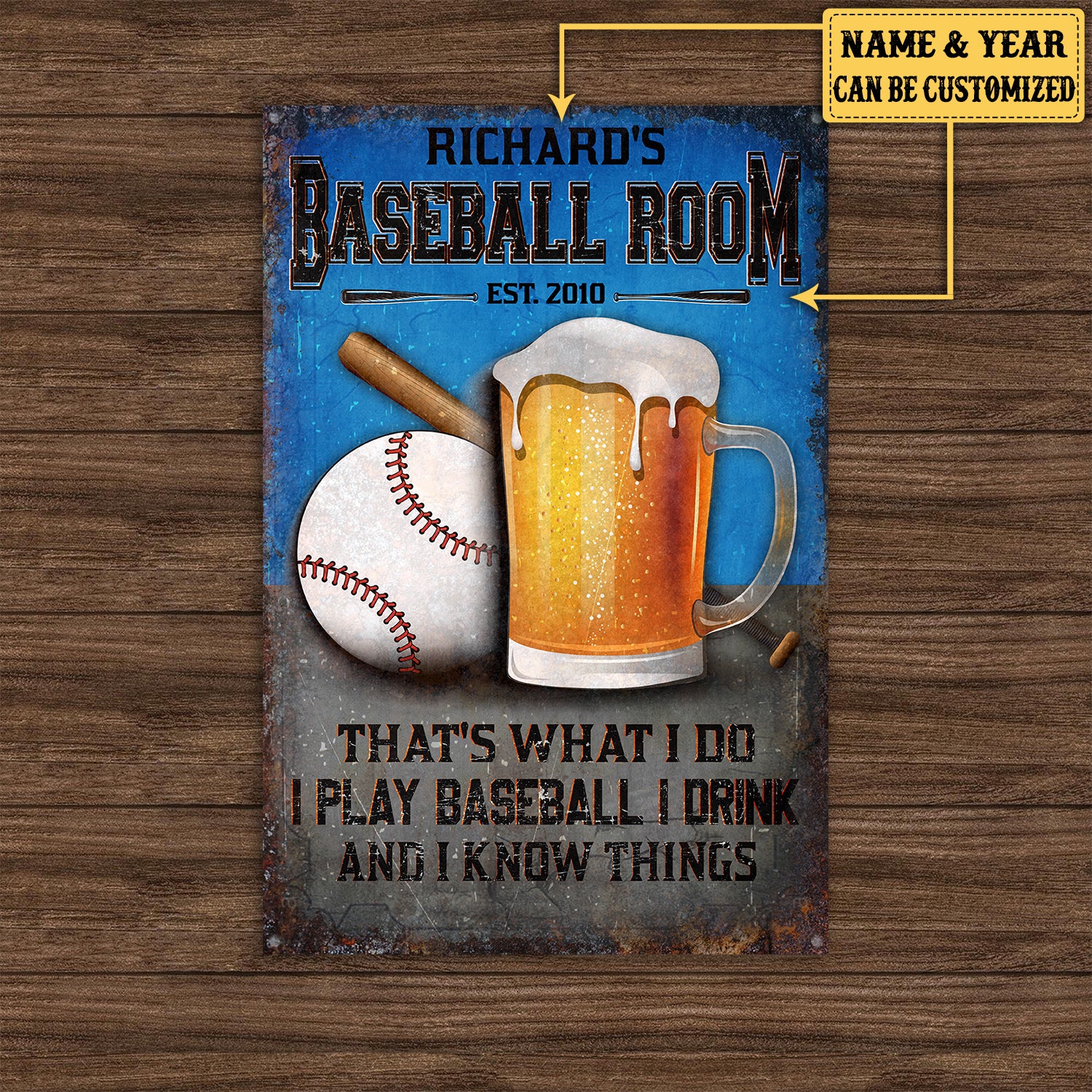 Personalized Baseball Room That's What I Do I Play Baseball I Drink And I Know Things Metal Sign