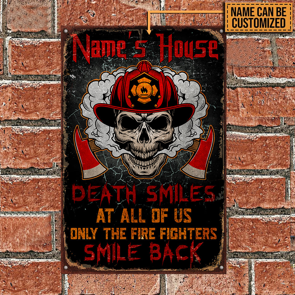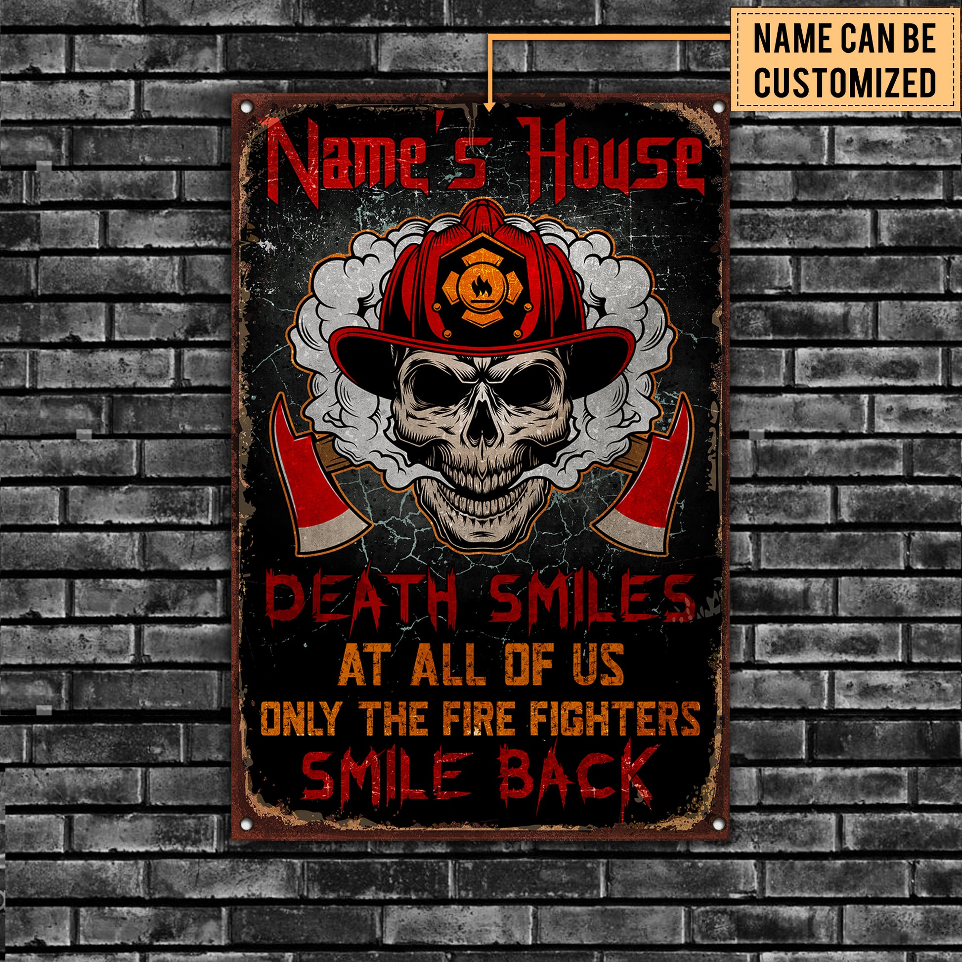 Personalized Death Smile At All Of Us Only The Fire Fighter Smile Back Metal Sign