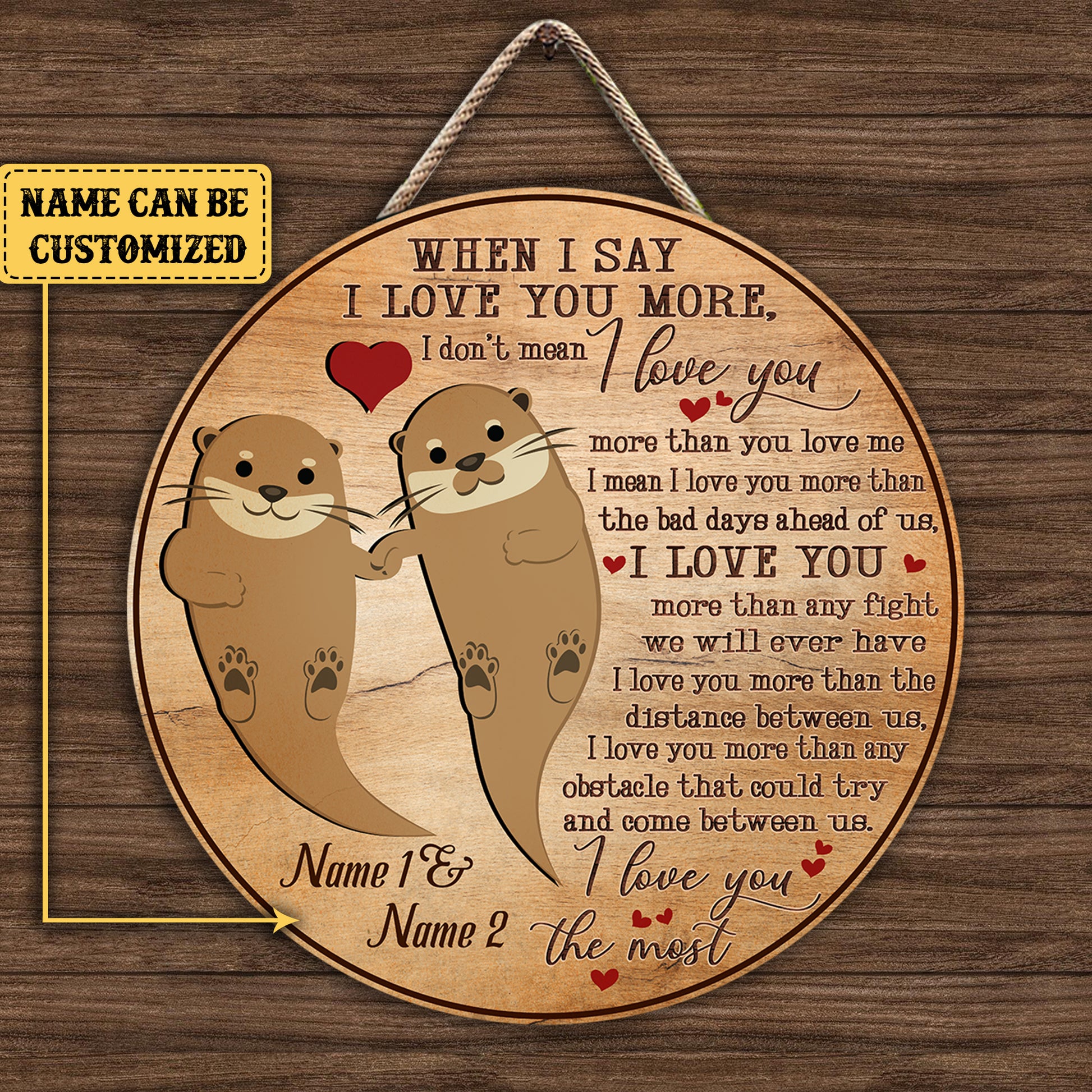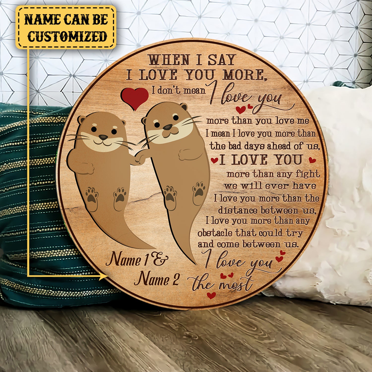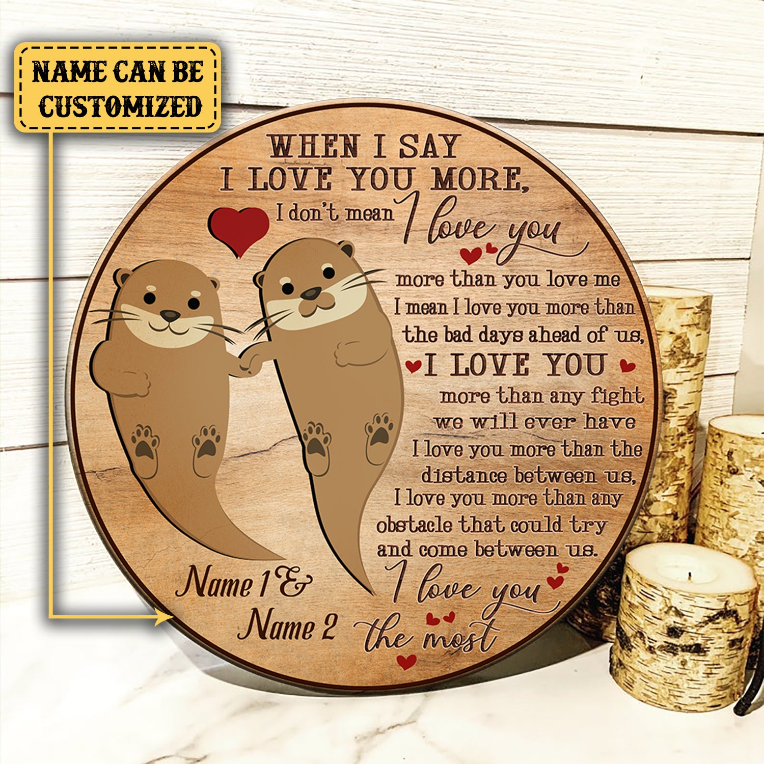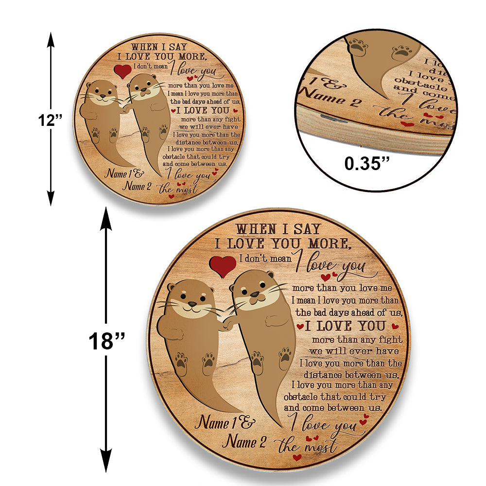 Personalized When I Say I Love You More Otter Wood Round Sign