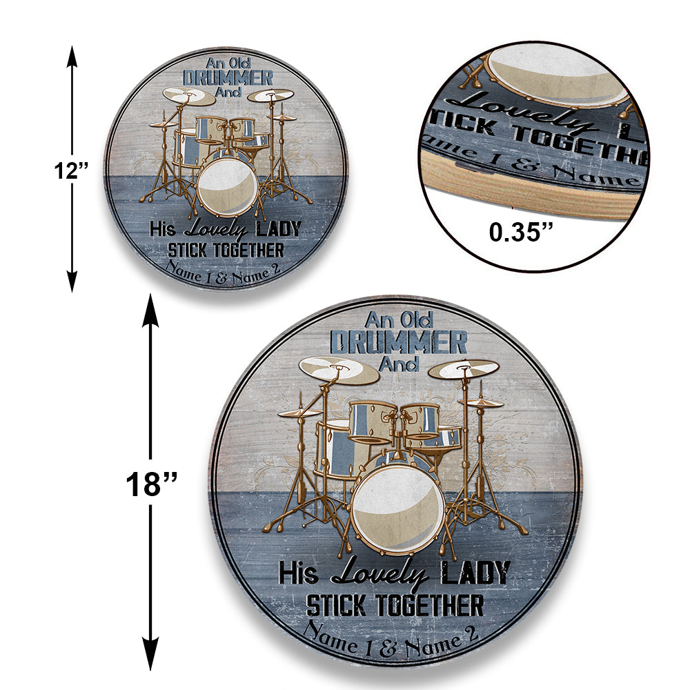 Personalized An Old Drummer And His Lovely Lady Stick Together Wood Round Sign