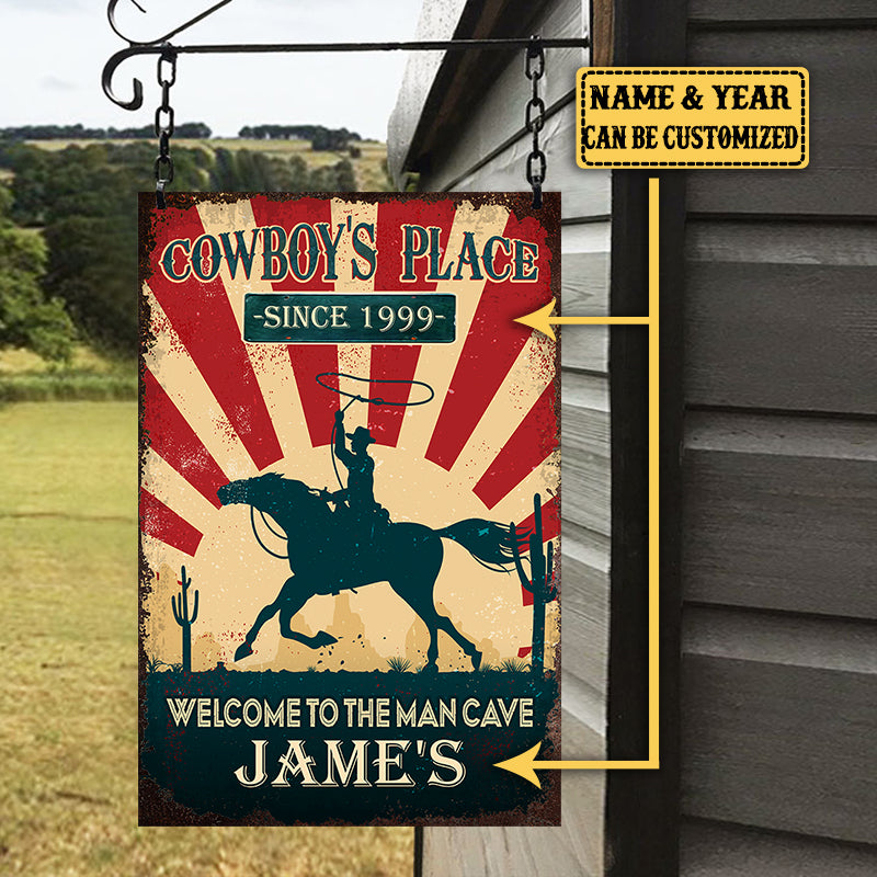 Personalized Cowboy Place Welcome To The Man Cave Metal Sign