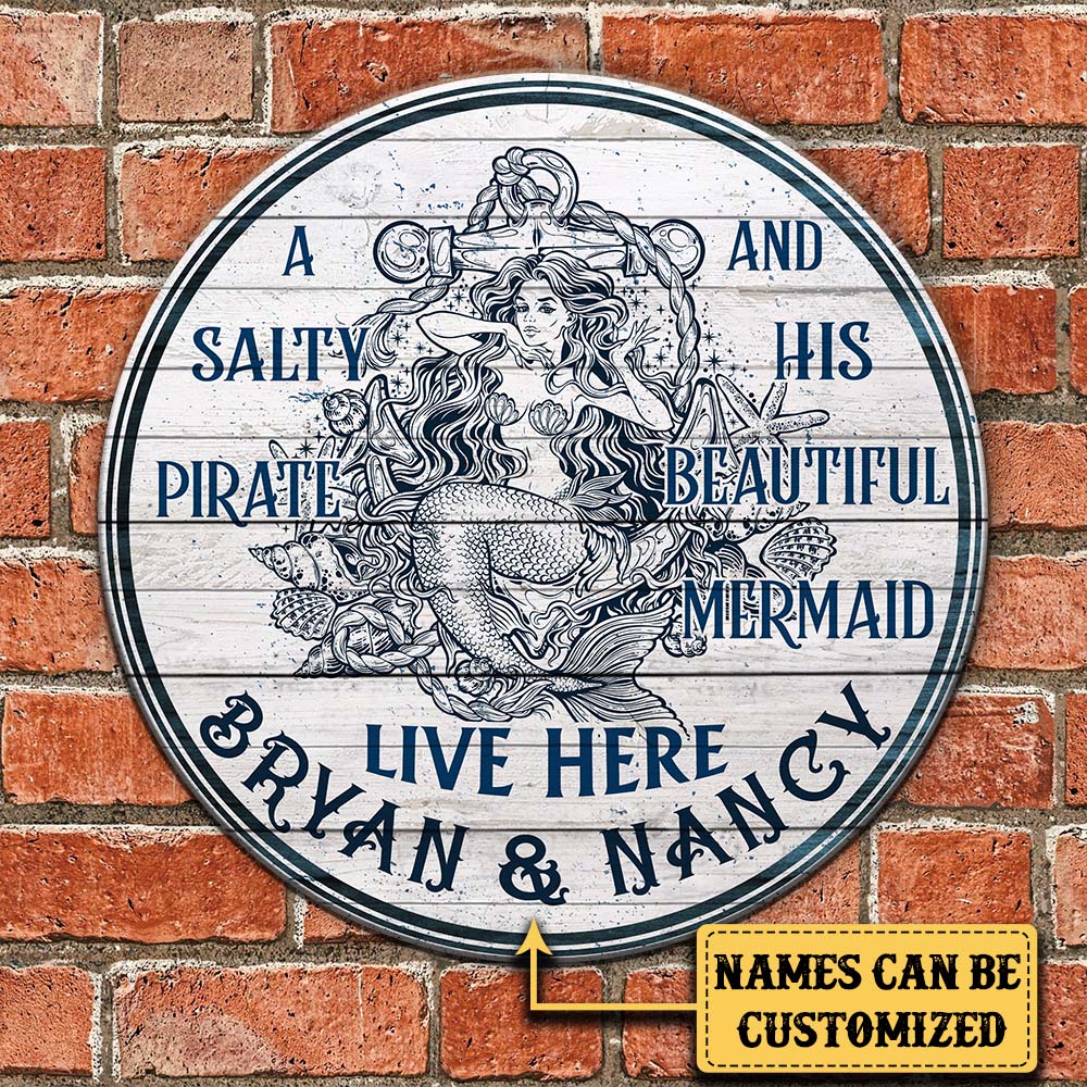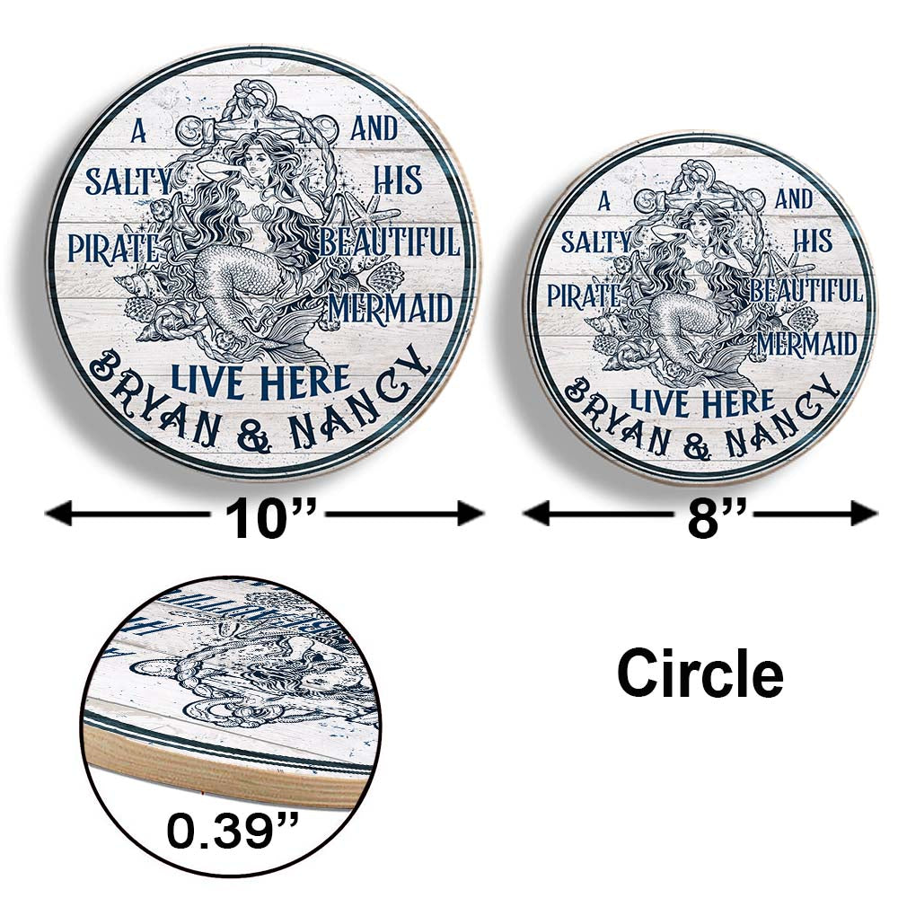 Personalized A Salty Pirate And His Beautiful Mermaid Live Here Pallet Wood Circle Sign