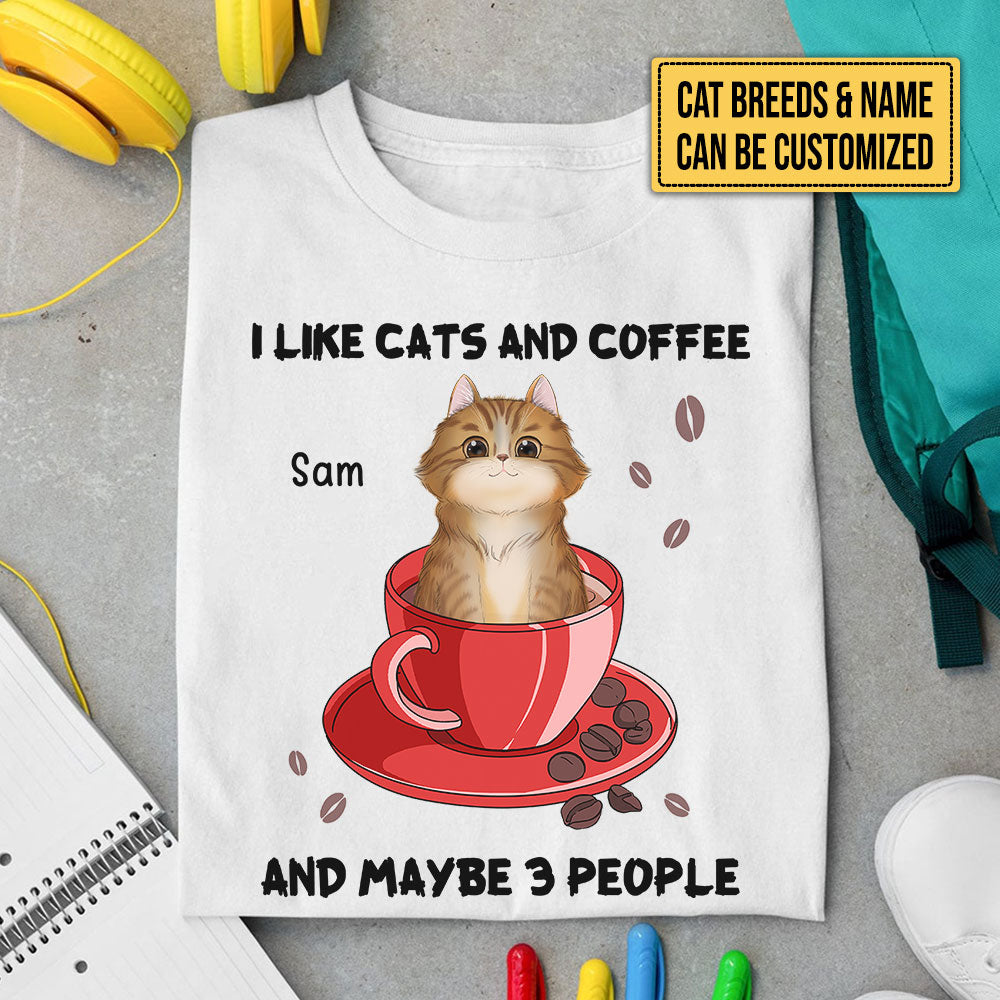 Personalized I Like Cats And Coffee And Maybe 3 People Shirt