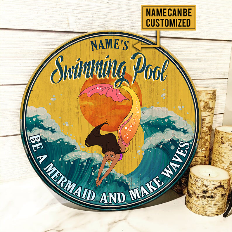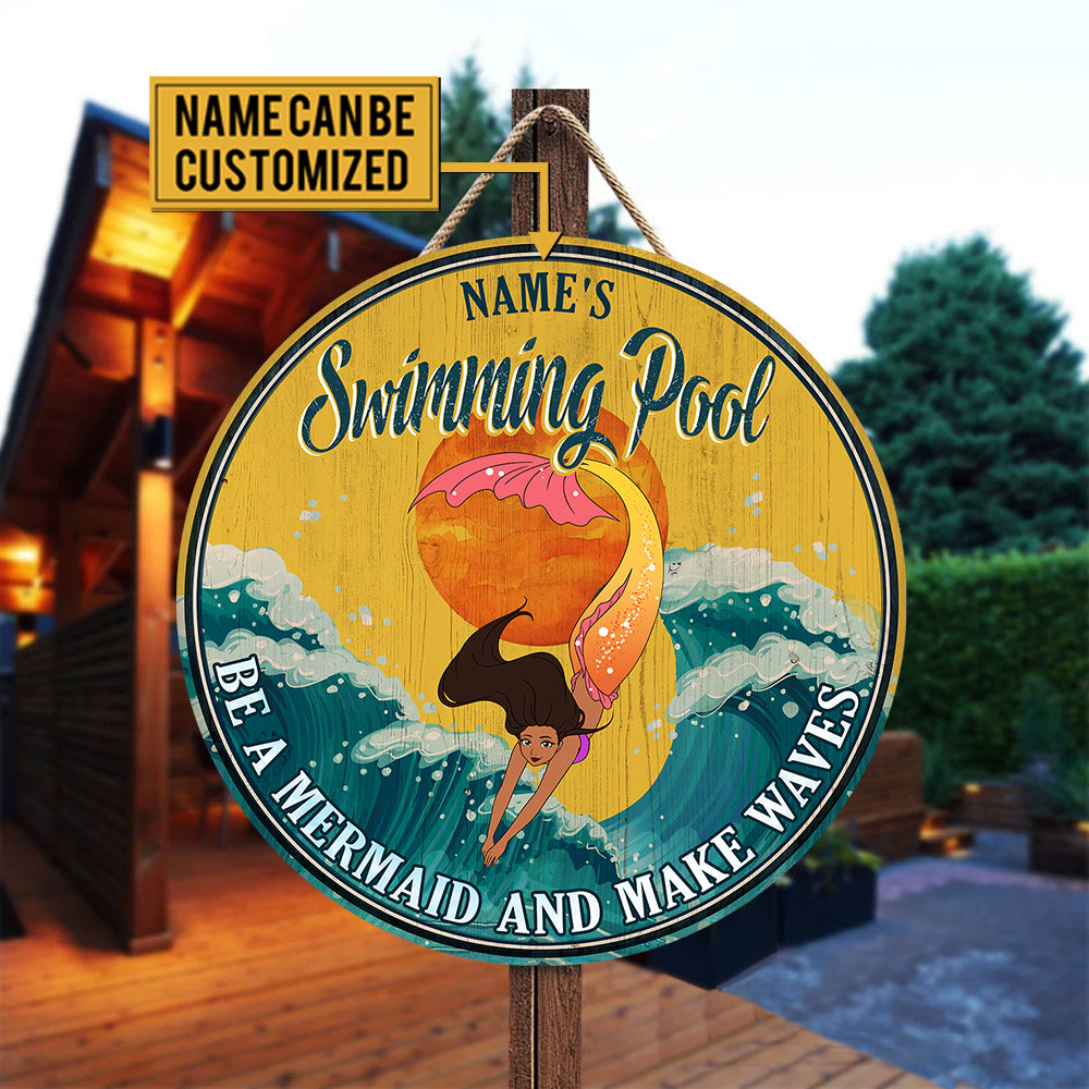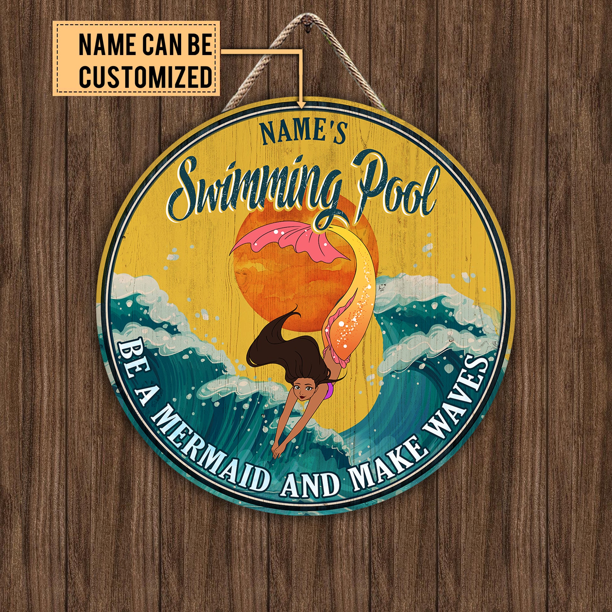 Personalized Swimming Pool Be A Mermaid And Make Waves Wood Round Sign