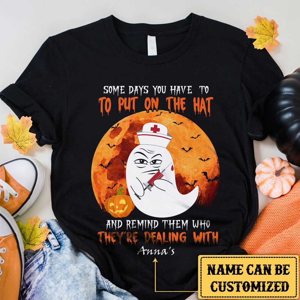 Personalized Some Days You Have To Put On The Hat And Remind Them Who They're Dealing With Nurse Halloween Shirt