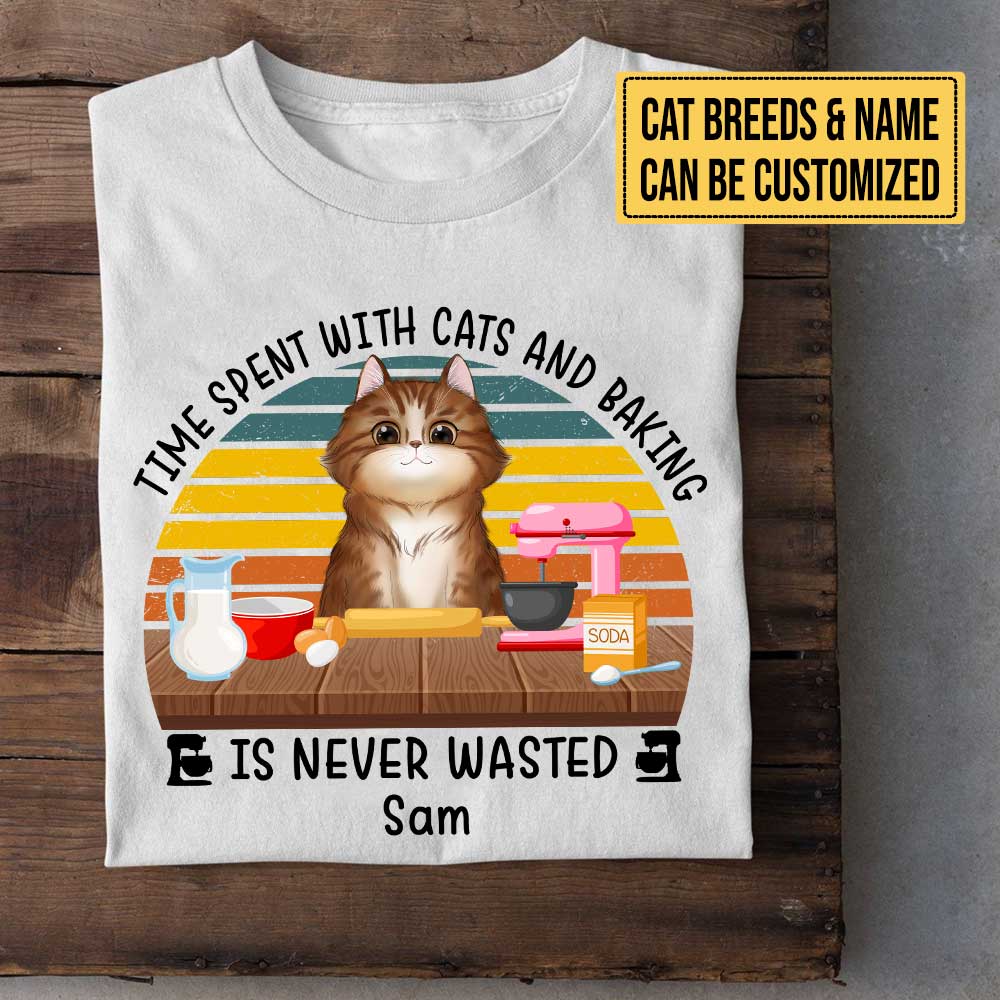 Personalized Time Spent With Cats And Baking Is Never Wasted Shirt