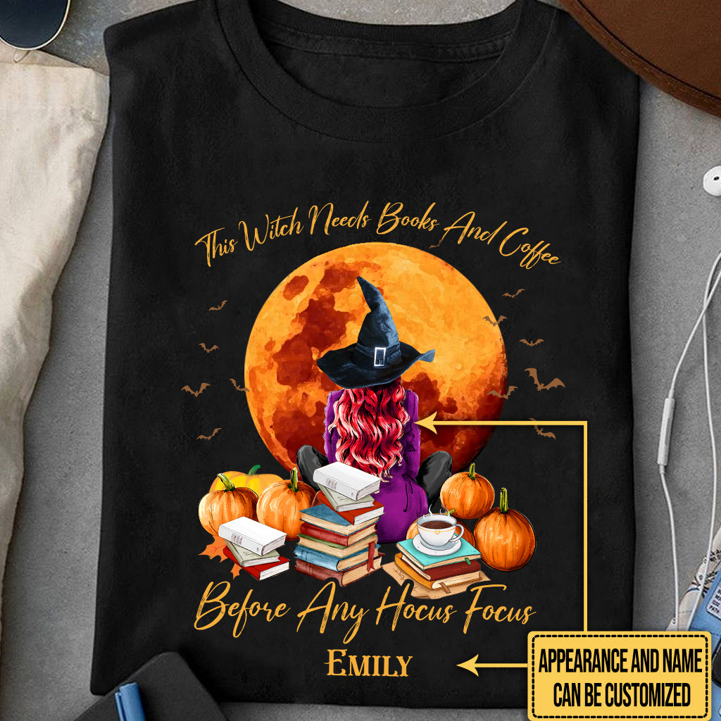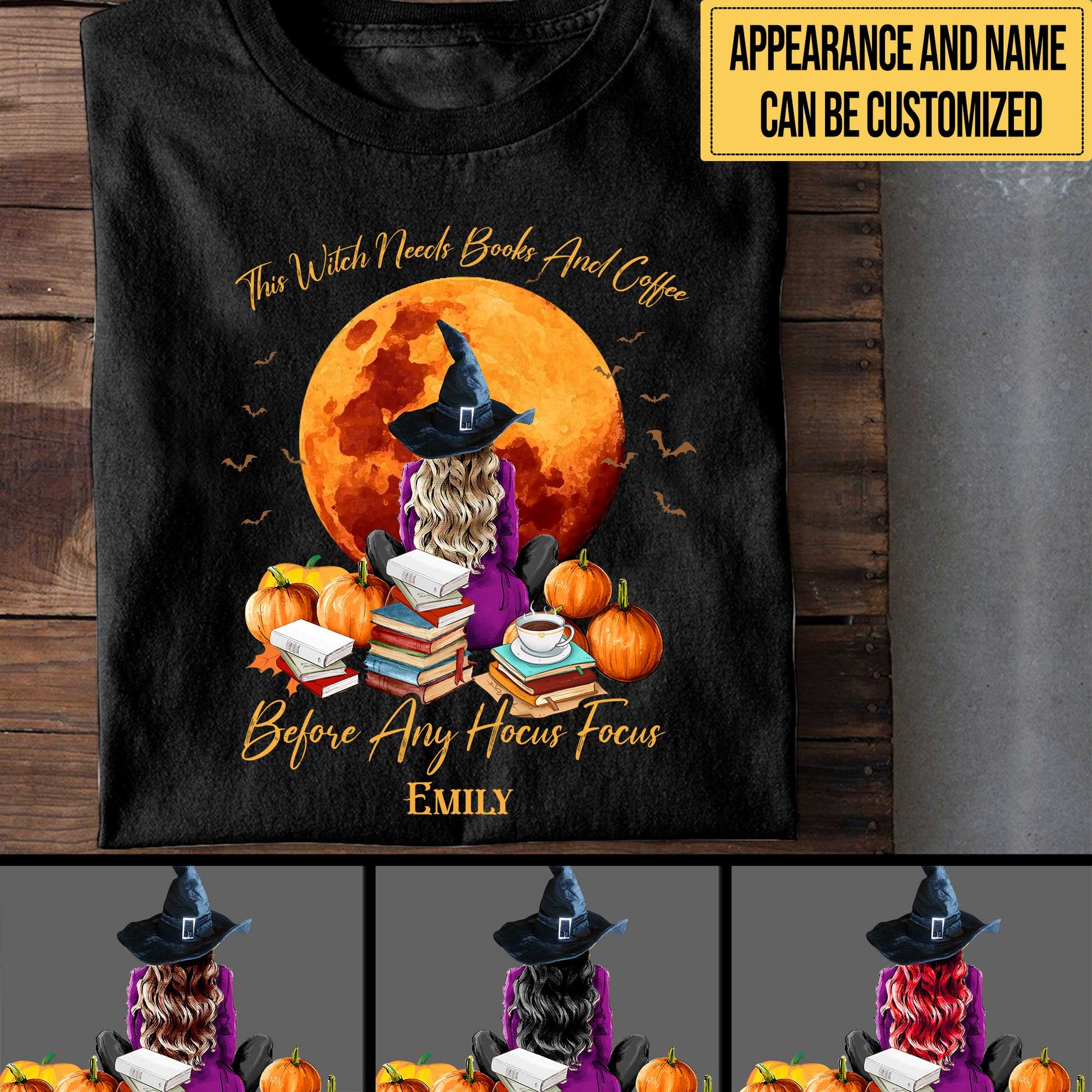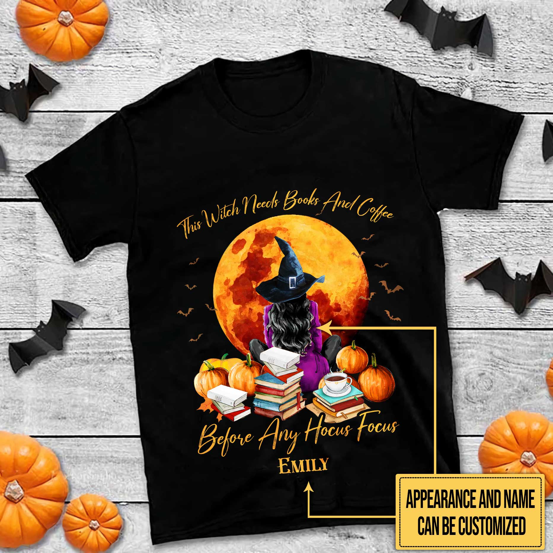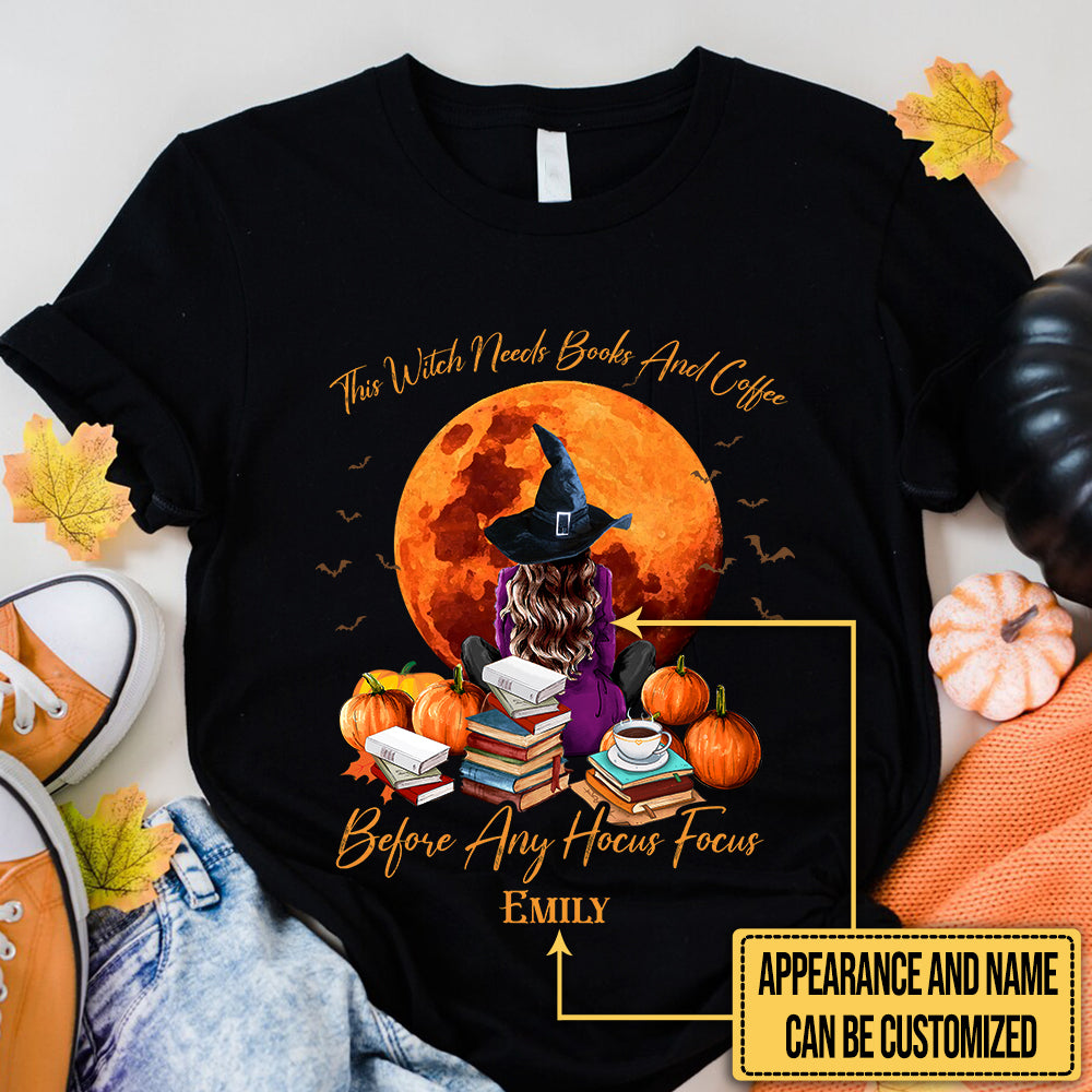 Personalized This Witch Needs Books And Coffee Before Any Hocus Focus Halloween Shirt