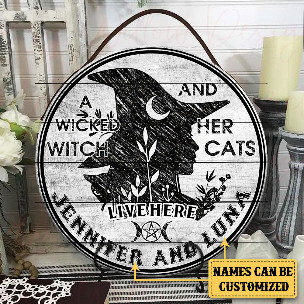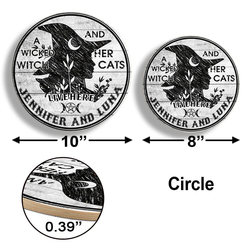 Personalized A Wicked Witch And Her Cat Live Here Pallet Wood Circle Sign