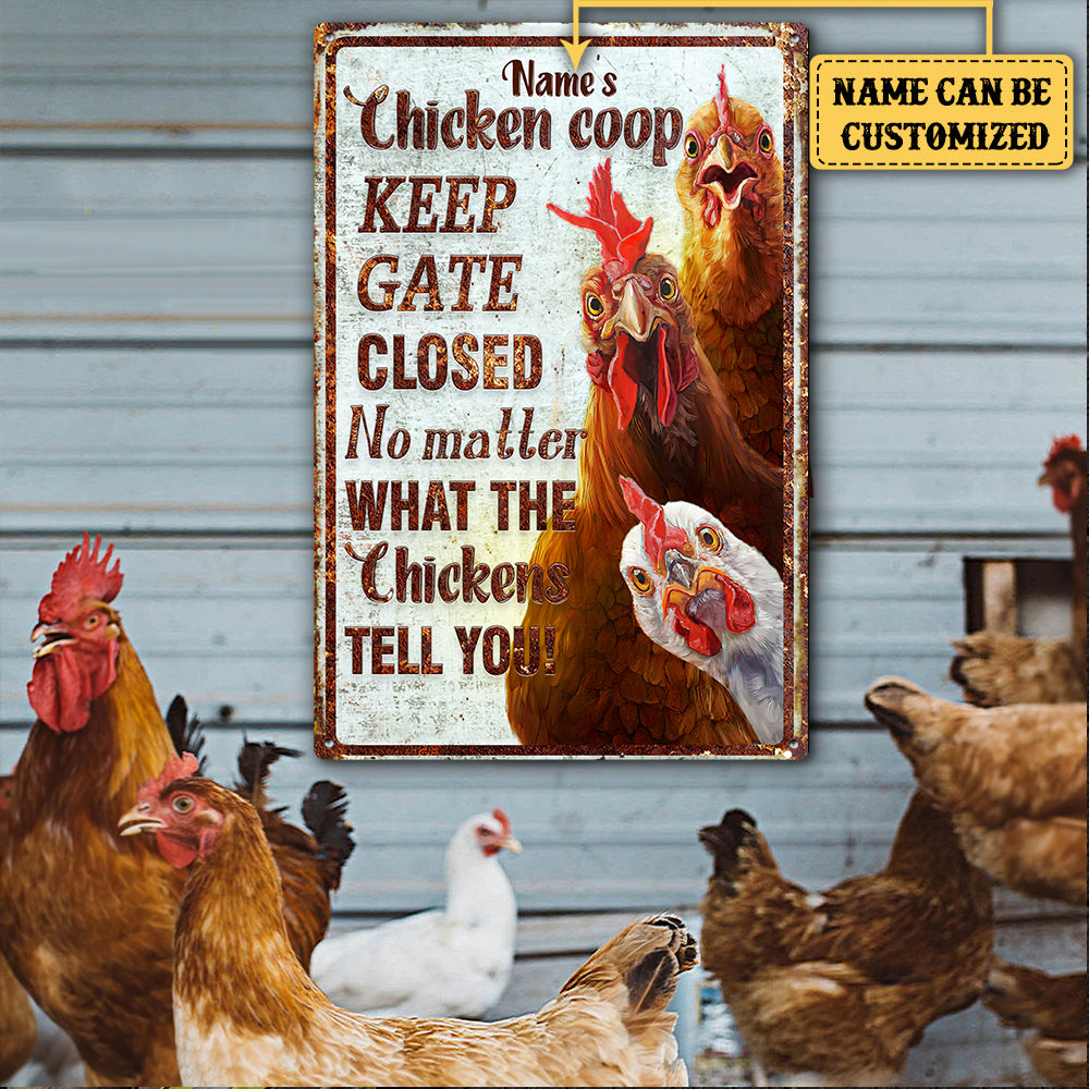 Personalized Chicken Coop Keep Gate Closed No Matter What The Chickens Tell You Metal Sign