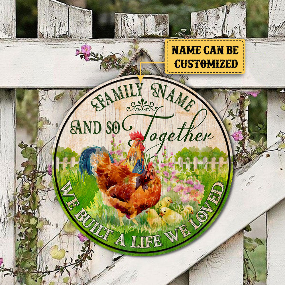 Personalized Chicken We Built A Life We Loved Wood Round Sign