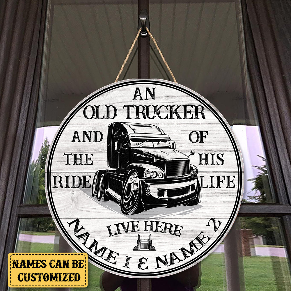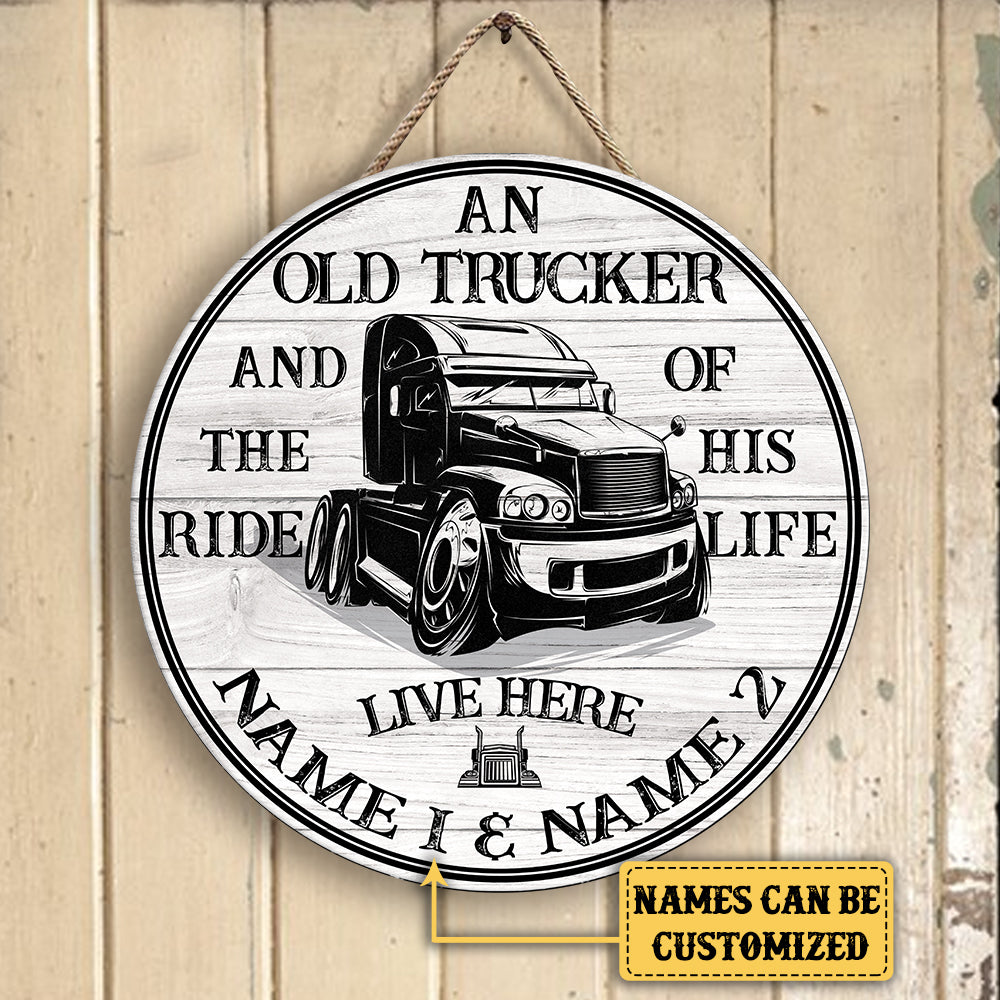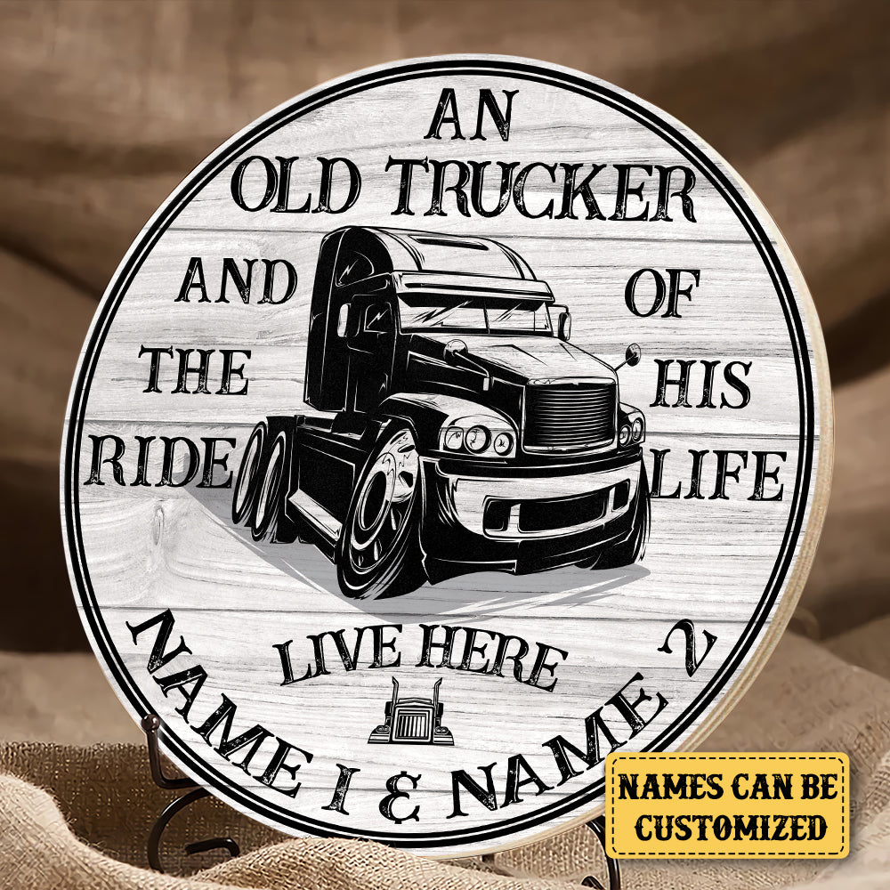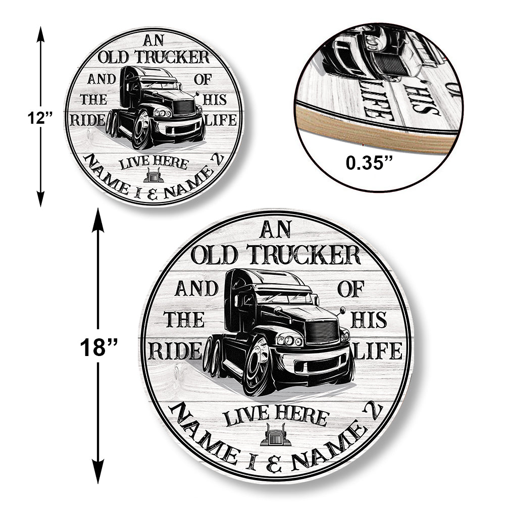 Personalized Trucker The Ride of His Life Wood Round Sign